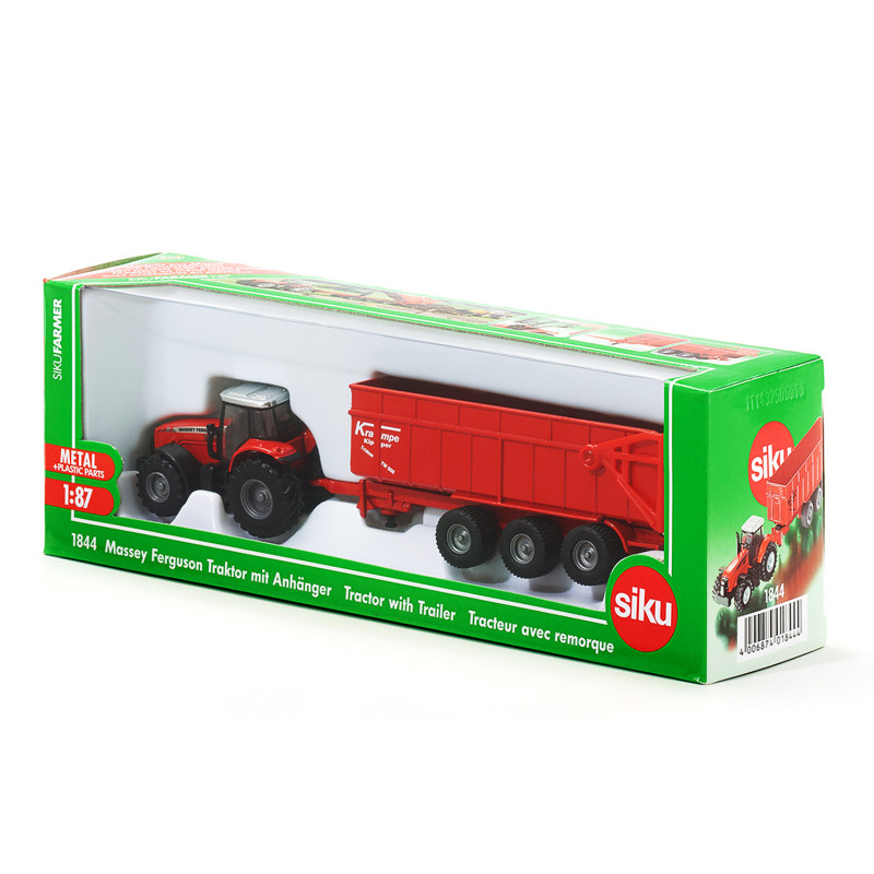 Massey Ferguson traktor med 3-axlat tippbart släp i scala 1:87.
