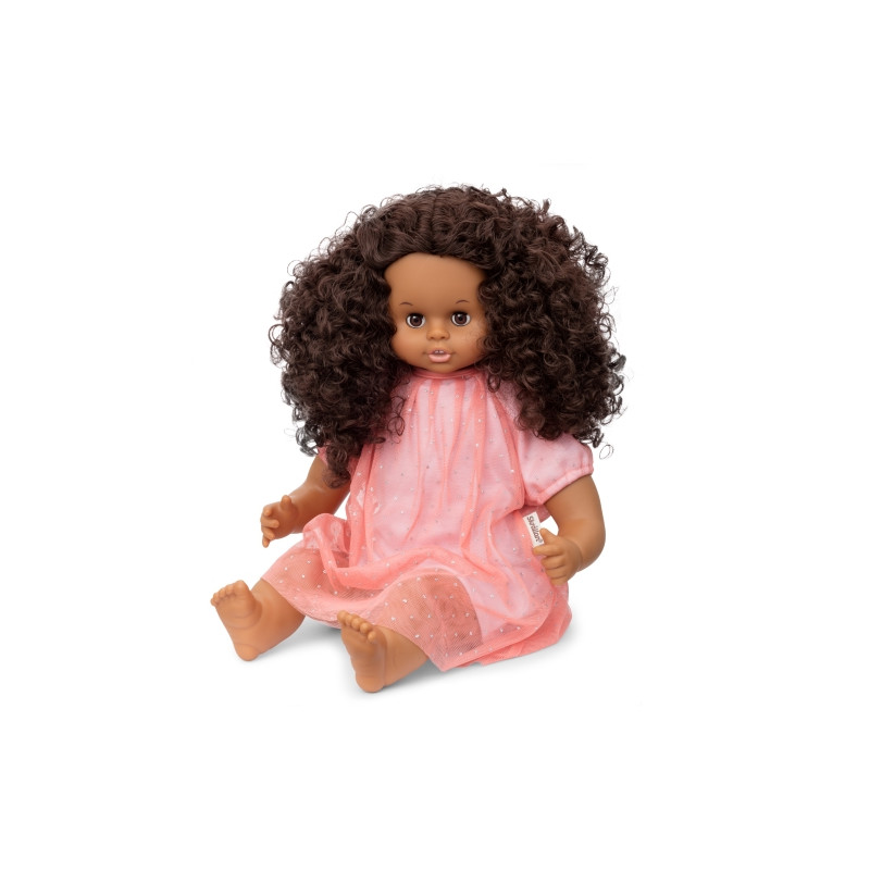 Selma har en vackert korallfärgad, skir klänning och ett härligt lockigt hår. Dockan är 45 cm lång och talar fem olika språk; svenska, norska, danska, finska och engelska. Byt enkelt språk på talverket i dockans rygg. Tryck på magen så säger taldockan 24 slumpvis valda meningar som uppmanar till aktiv lek - ute som inne! Dockans kropp är mjuk och ögonen blundar när man lägger den ner. Mixa och matcha gärna med Skrållans docktillbehör och dockkläder. Passar dockor upp till 45 cm. Skrållan - en svensk klassiker sedan 1966 som är älskad av generationer. Kvalitativa dockor, docktillbehör och dockkläder som skapar lekglädje och rolig docklek för barn i alla åldrar!