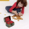 En häftig sparbössa formad som en pirats skattkista med en öppning i toppen stor nog för ett mynt eller ihopvikt sedel i taget. Snygg att ha framme och perfekt för att spara växel och slantarna man får från mor- och farföräldrar samt bus-eller-godis rundorna. Låses med ett litet hänglås och kommer med två små nycklar så att du kan få tag på dina sparade pengar när det är något du verkligen vill köpa. Hålet där man stoppar i pengarna är inklätt med metall för extra hållbarhet och insidan av sparbössan är skyddad av ett lager sammet. Tillverkad av trä klätt med kartong, polyester och delar av metall. Storlek: 10 x 12 x 8,2 cm. Från +0 månader