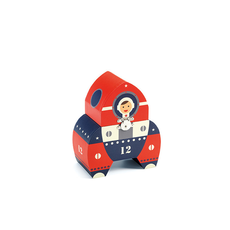 Ett kul kombinerat smyckeskrin och speldosa i form av en rymdraket, men en liten astronaut som snurrar till melodin Take Me Out to the Ball Game av Albert von Tilzer när man öppnar locket. Skrinet har ett fack för smycken (eller hemligheter) som är inklätt med mjuk sammet. Från 4 år. Storlek: 14,5 x 17,5 x 7,8 cm