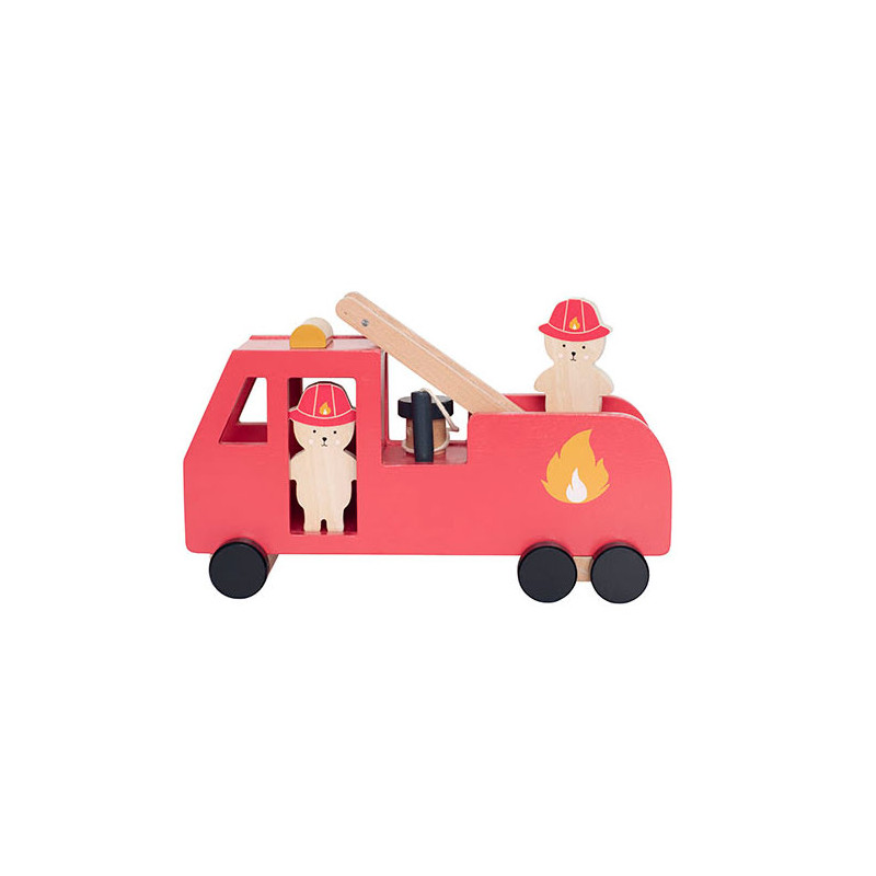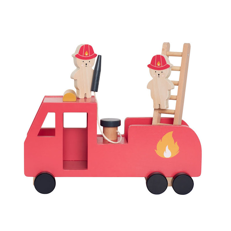 Tuff brandbil för de lite mindre barnen. Med denna coola brandbil är du snabbt framme när elden är lös. De 2 små brandmän som är med klättrar upp för stegen med sin slang och släcker branden. Stegen går att vrida på olika håll och kan även fällas ner. Brandslangen rullar man in igen när man är klar och stoppar ner i sin hållare.