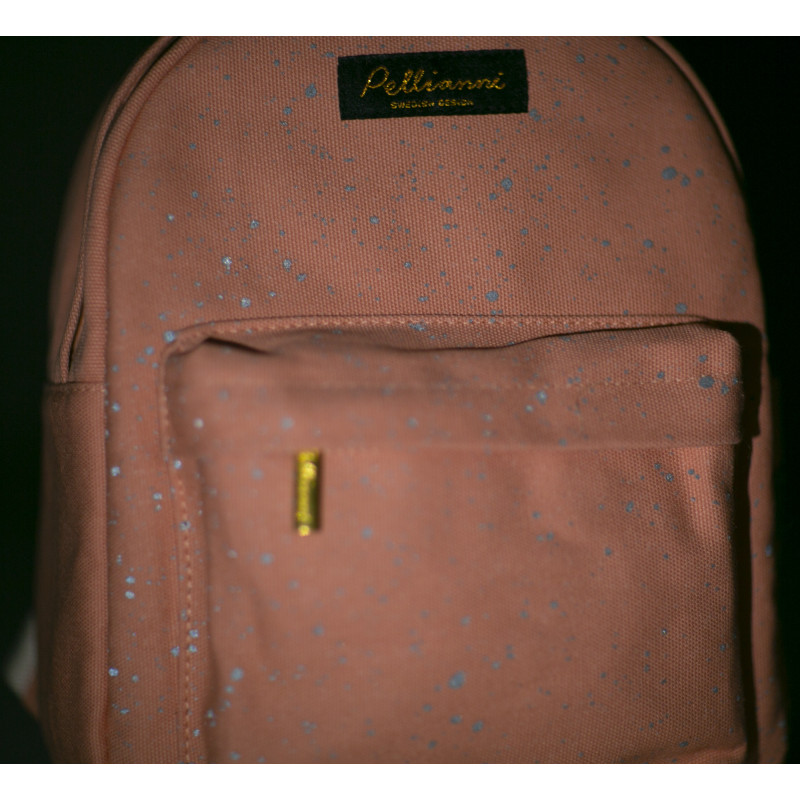 Från ca 18 månader. . Denna fina ryggsäck för barn är vegansk samt tillverkad av ekologisk och miljövänligt tillverkad bomullscanvas i härligt persiko-rosa med ett kul stänkt mönster. . En härligt gosig snuttefilt där en liten sittande nalle med rufsig ljusbrun päls håller fast i ena hörnet. Den här söta björnen gillar att dela med sig och barnet får en liten kompis att leka med eller söka tröst hos.