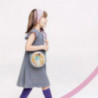 En snygg rund handväska dekorerad med en elegant bild på en tjej och hennes vita katt. Utrustad med en mönstrad axelrem med justerbar längd samt en dragare (kläpp/flärp) till dragkedjan formad som konturen av en väska. Utsida av 100% bomull och foder av 90% polyester, 10% bomull. Storlek på själva väskan: ca 17 cm i diameter, 4,3 cm djup.