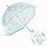 Ett sött paraply som är designat för barn och dekorerat med små enhörningar samt regnbågar i pastellfärger på genomskinlig plast och med regnbågar längs kanten som är kantad med textil. En gullig och praktisk accessoar som är perfekt för att göra regniga promenader trevligare. Handtaget och spetsen på paraplyet är ljusblåa och det böjda handtaget är perfekt för att hänga upp paraplyet i. Paraplyet har en flexibel och tålig ram av glasfiber samt ett säkerhetssystem för att undvika klämda fingrar när paraplyet fälls upp eller ihop. Tack vare att paraplyt är delvis genomskinligt är det lättare att se barnet och vad det gör, samtidigt som barnet kan se ansiktet på vuxna, skyltar och annat som skulle skymmas av ett vanligt paraply. Från 3 år. Storlek: ⌀70 x 68 cm.