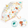 Ett kul litet paraply för de mindre barnen, dekorerat med söta bilder av katter som håller på att måla, sätta tassavtryck, dekorera med färgglad tejp med mera på genomskinlig plast och kantat med ett snyggt ljusrosa tygband. Med sin lilla storlek och breda, relativt grunda form är detta ett coolt och praktiskt paraply som är perfekt för barn från 3 års ålder. Den huvudsakligen transparenta designen gör att barnet har möjlighet att se ut och upp genom paraplyet för att se skyltar och annat som annars skulle ha skymts. Paraplyets ram har åtta ribbor och är tillverkad av fiberglas vilket gör den lätt, flexibel samt att den tål lite hårdare tag. Den manuella öppningsmekanismen har ett säkerhetssystem som gör att barn kan öppna och fälla ihop paraplyet utan att riskera klämda fingrar. Paraplyet har också ett praktiskt böjt handtag som gör att man lätt kan hänga upp det när det inte används och små runda knoppar som skyddar ändarna på ribborna så att de inte rivs. En färggrann accessoar som är perfekt att pigga upp regniga promenader med. Från +3 år. Storlek uppfällt: 55 cm högt, 68 cm i diameter.