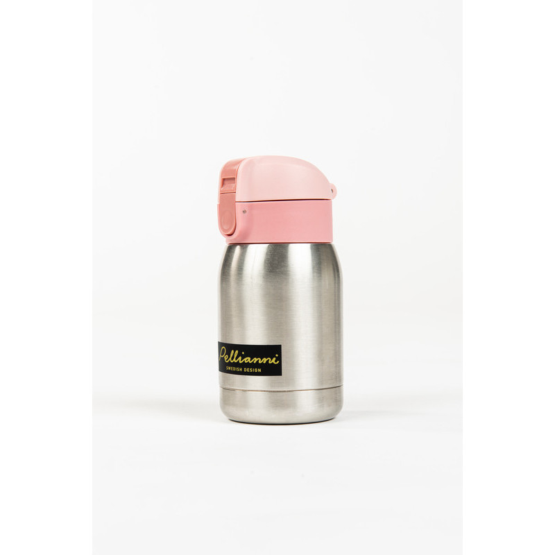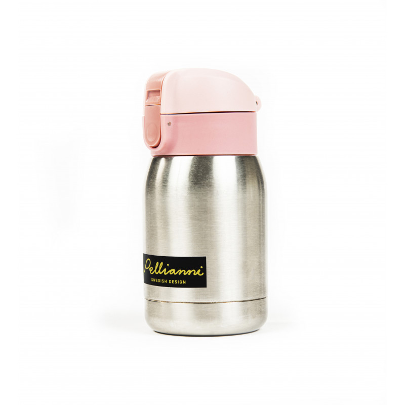 Liten och behändig thermos i rostfritt stål av högsta kvalitet, 18/8 och livsmedelsgodkännt silikon. Denna flaska har dubbla vakuumisolerade väggar och är helt fri från BPA, ftalater eller bly. Fungerar lika bra som vattenflaska eller thermos. Håller varmt upp til 6 timmar och kallt upp till 12 timmar. Korken öppnas lätt med ett tryck men har även en säkerhetsspärr. 200 ml
